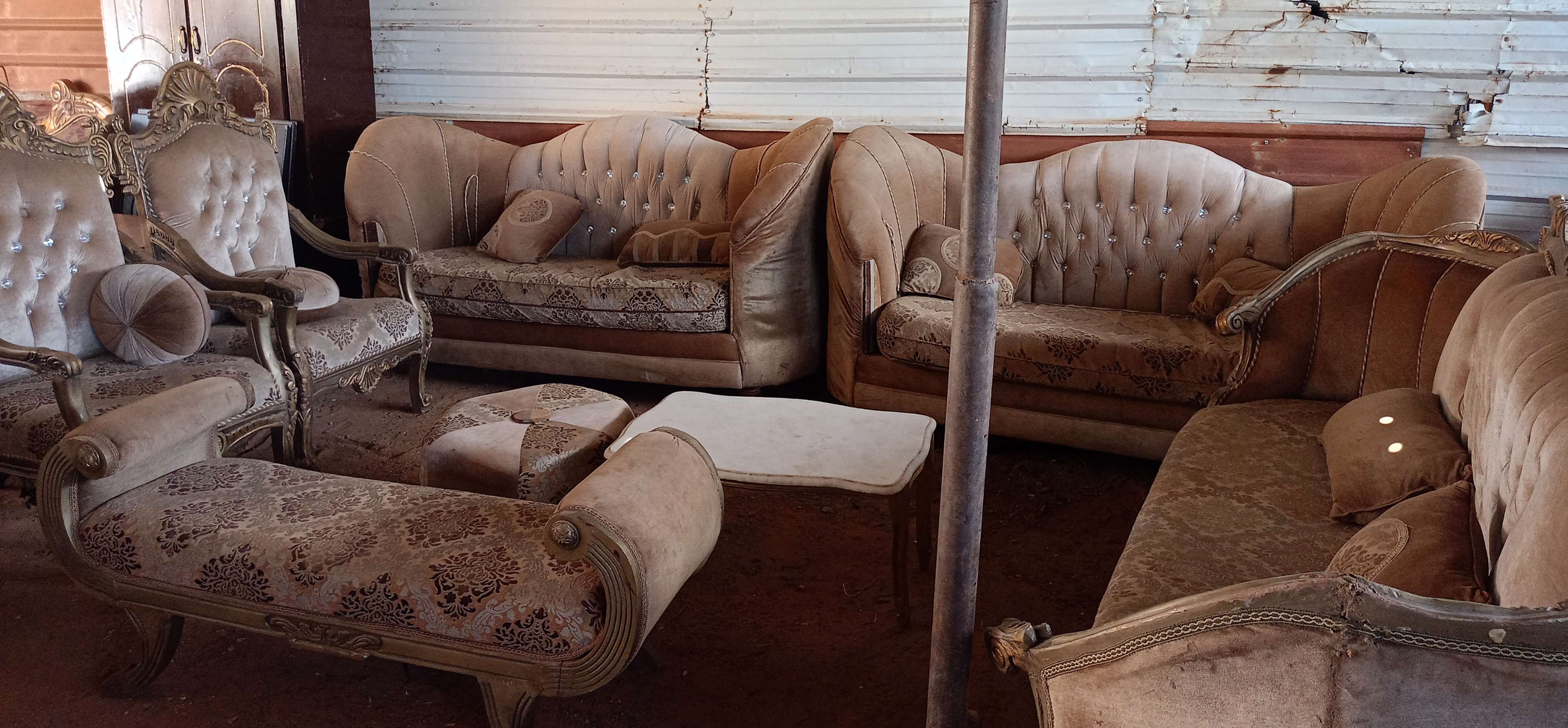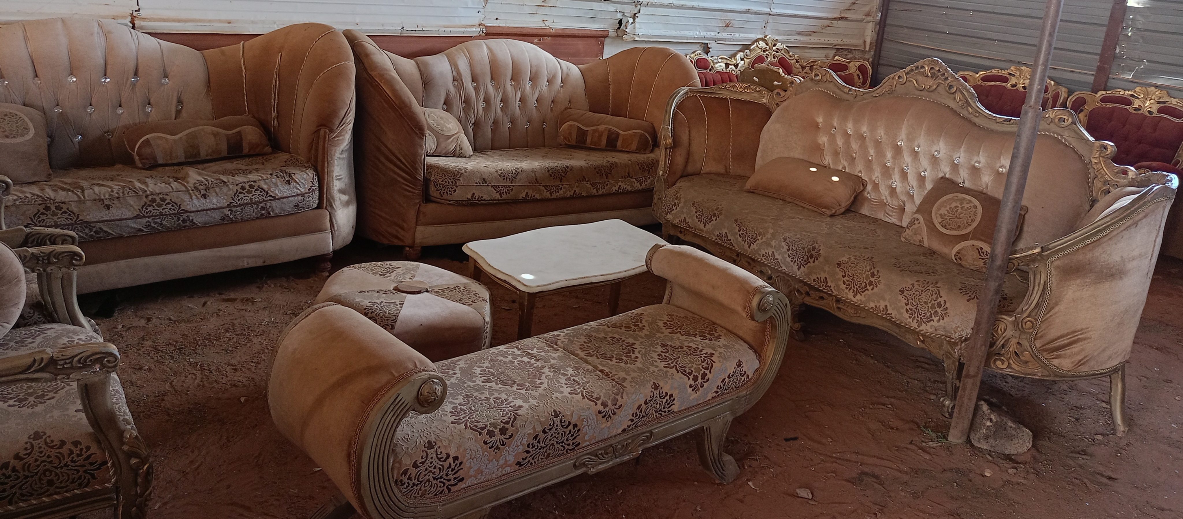 كنب دمياطي مكون من ثلاثه قطع كبيرة واثنين كرسي وكنبه صغيره وطربيزة ومقعد المكان الازهري