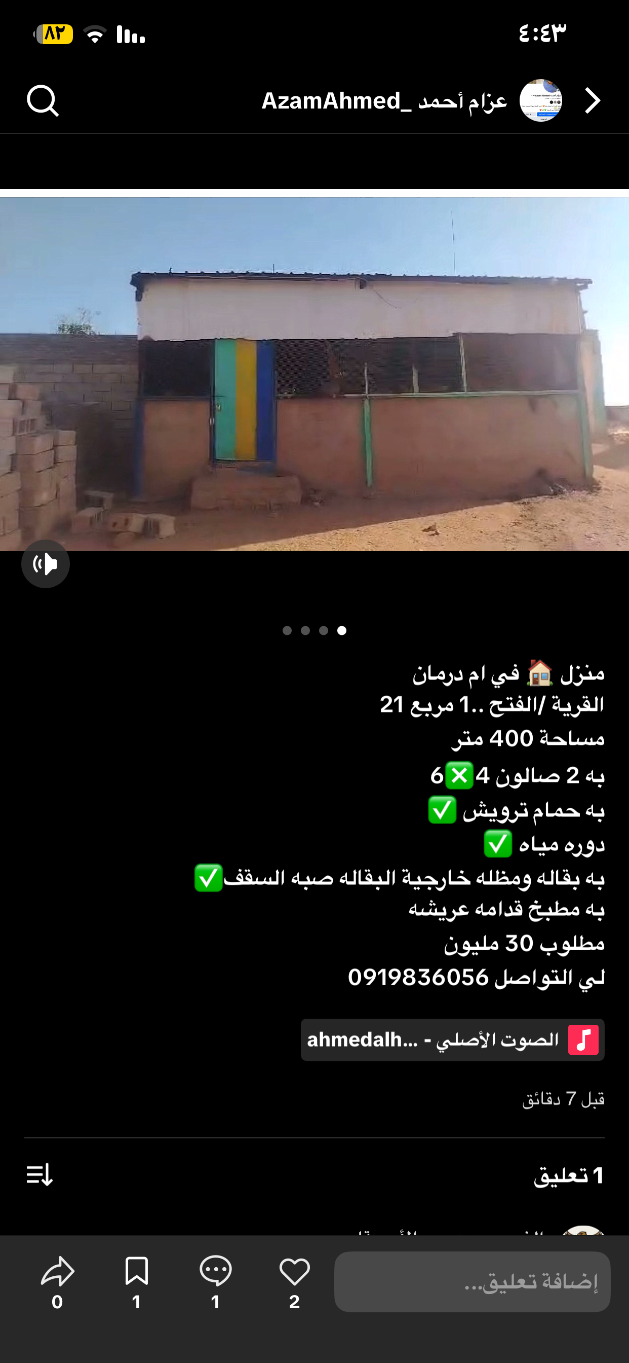 قطعة أرض في الأدماب محلية بحري قري التضامن من الشمال جار ومن الغرب جار ومن الجنوب جار المساحة1000 المبلغ 90مليارعقارات10,000,000 جنيه سوداني